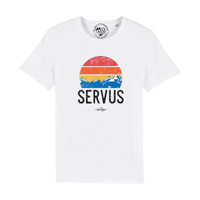 Servus, i bin dei neues, hochwertiges bayrisches T-Shirt "Servus" und werd extra für dich bei uns dahoam im Digitaldruck veredelt.