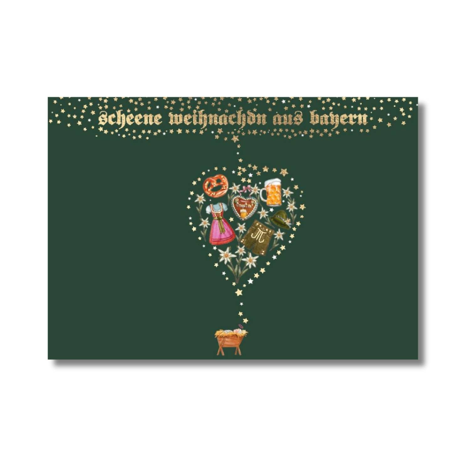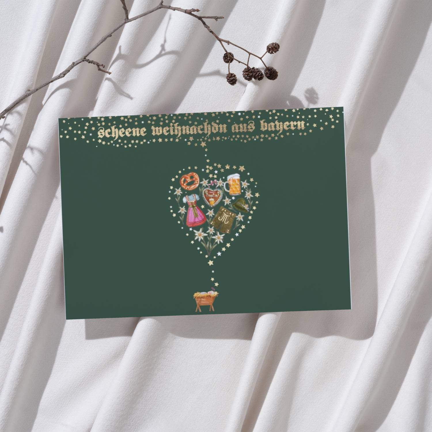 Glückwunschkarte "Scheene Weihnachdn aus Bayern" • Doppelkarte mit Kuvert • 15 x 10,5 cm