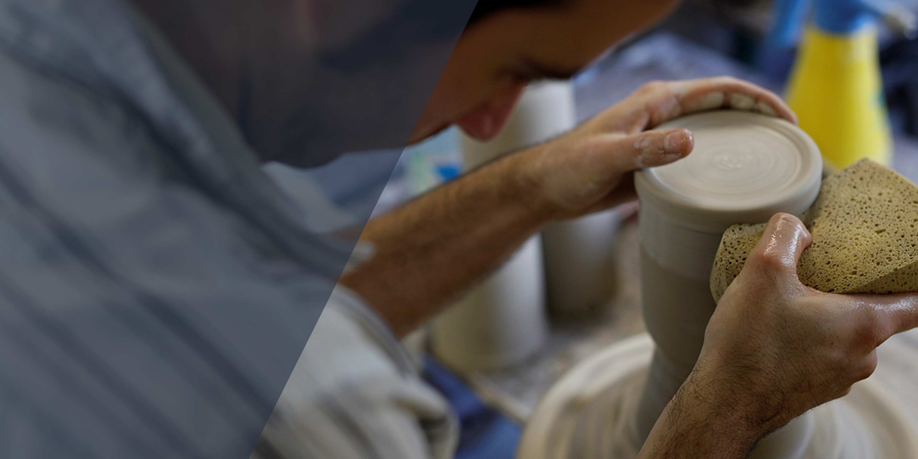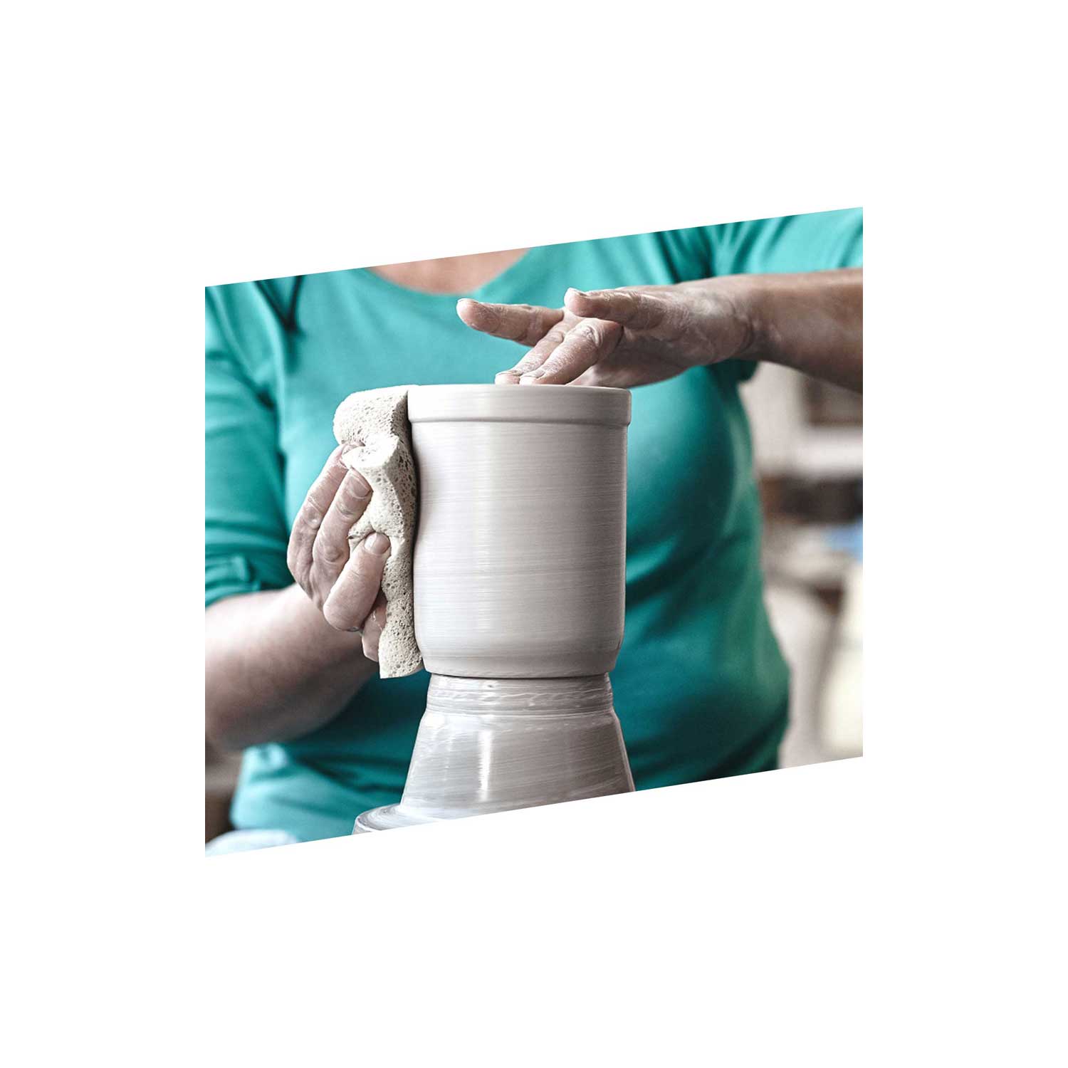 Unsere Krüge werden aus im Westerwald abgebauten Ton produziert. Dieser Ton wird von Verunreinigungen befreit und durch Wasserzugabe in eine für die spätere Verarbeitung geeignete Konsistenz gebracht. Die Formgebung der Krüge erfolgt mit einer genau abgemessenen Menge des aufbereiteten Tones. Auf der sogenannten "Abdrehscheibe" werden die Bierkrüge geglättet und evtl. entstandene Grate entfernt.