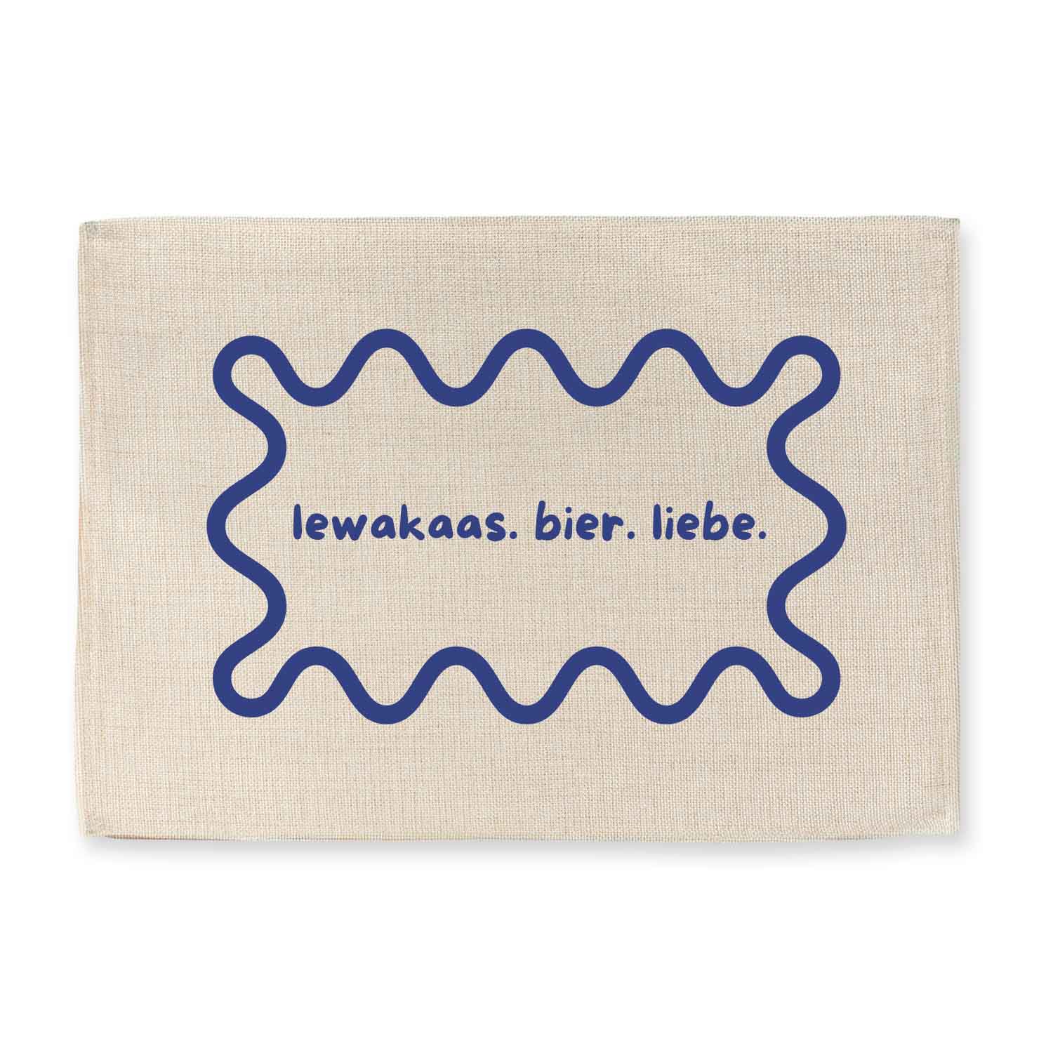 Tischset "lewakaas. bier. liebe." • bayerische Platz-Matten mit Spruch • Untersetzer, abwaschbar, Jute-Imitat • 40,5 cm x 30,5 cm