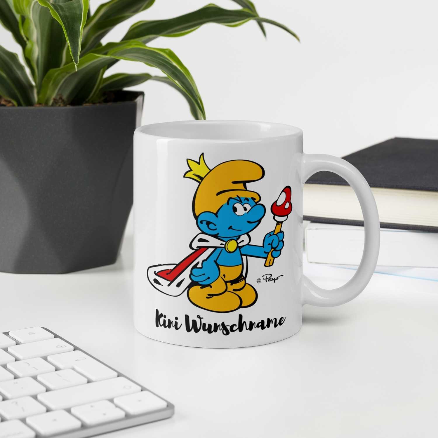 Schlumpf Tasse „Kini mit Wunschname“ – Für wahre Thronfolger