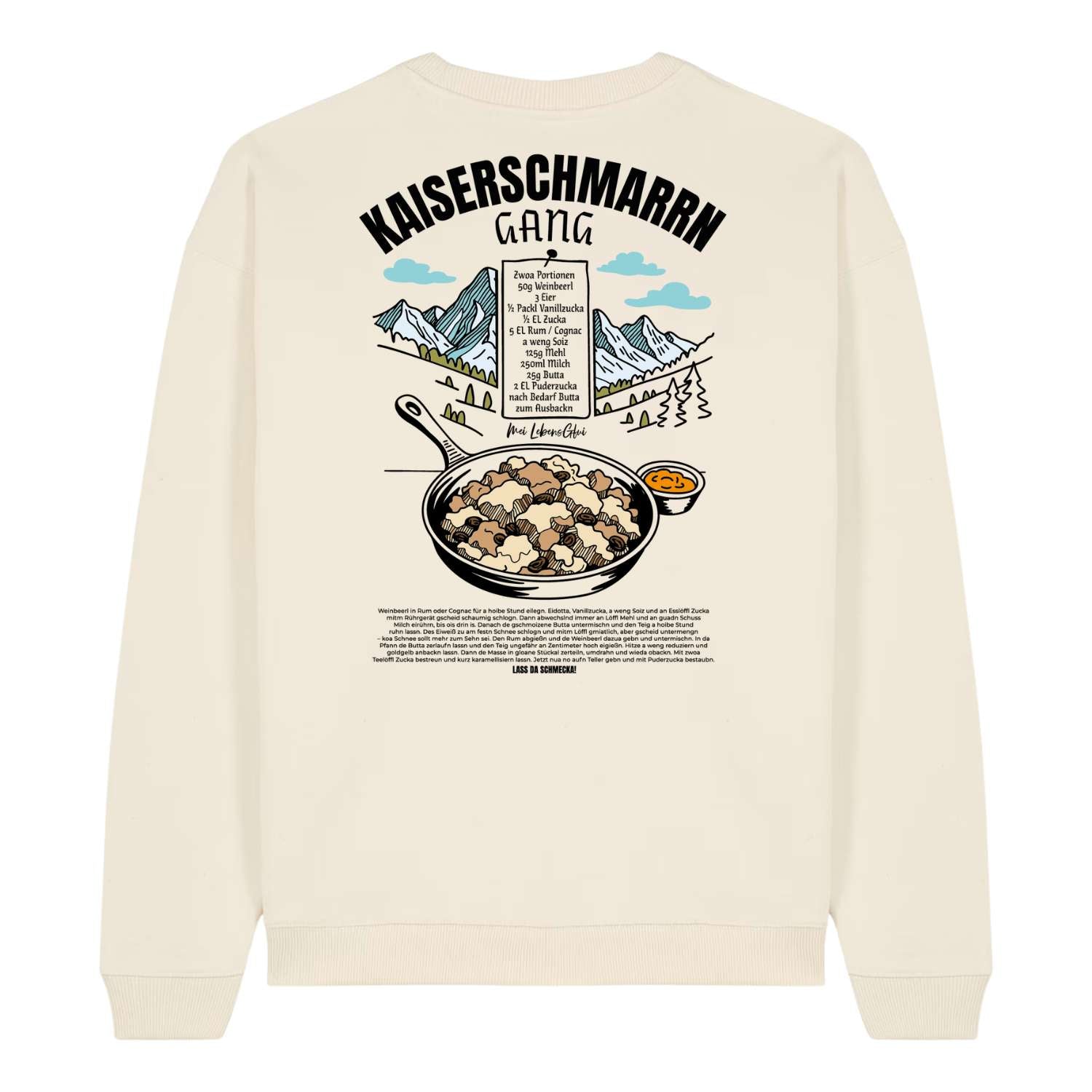 Servus, i bin dei neues, hochwertiges Sweatershirt "Kaiserschmarrn Gang" und werd extra für dich bei uns dahoam im Digitaldruck veredelt. Erst nach deiner Bestellung wird dei Hoodie bei uns im bayerischen Oberland frisch (on demand) bedruckt.