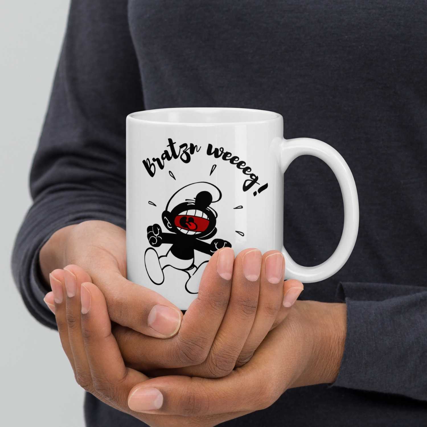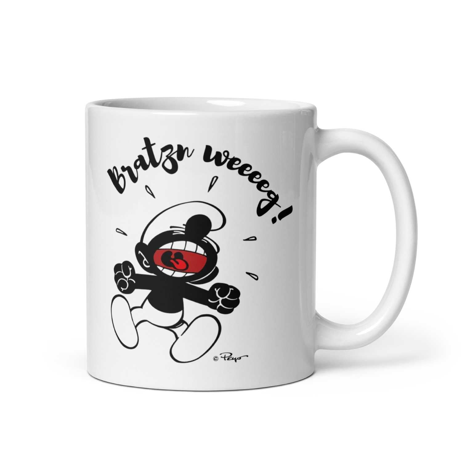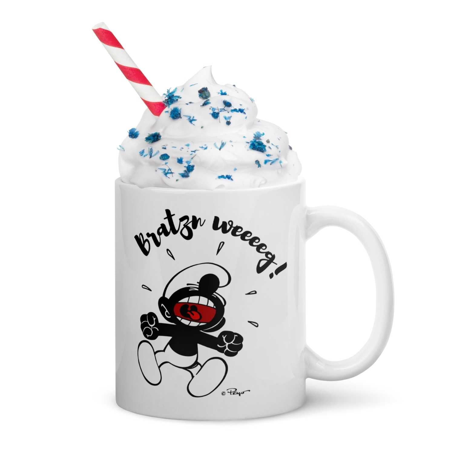Schlumpf Tasse „Bratzn weeeeg!“ – Für alle mit kurzem Zündschnürl