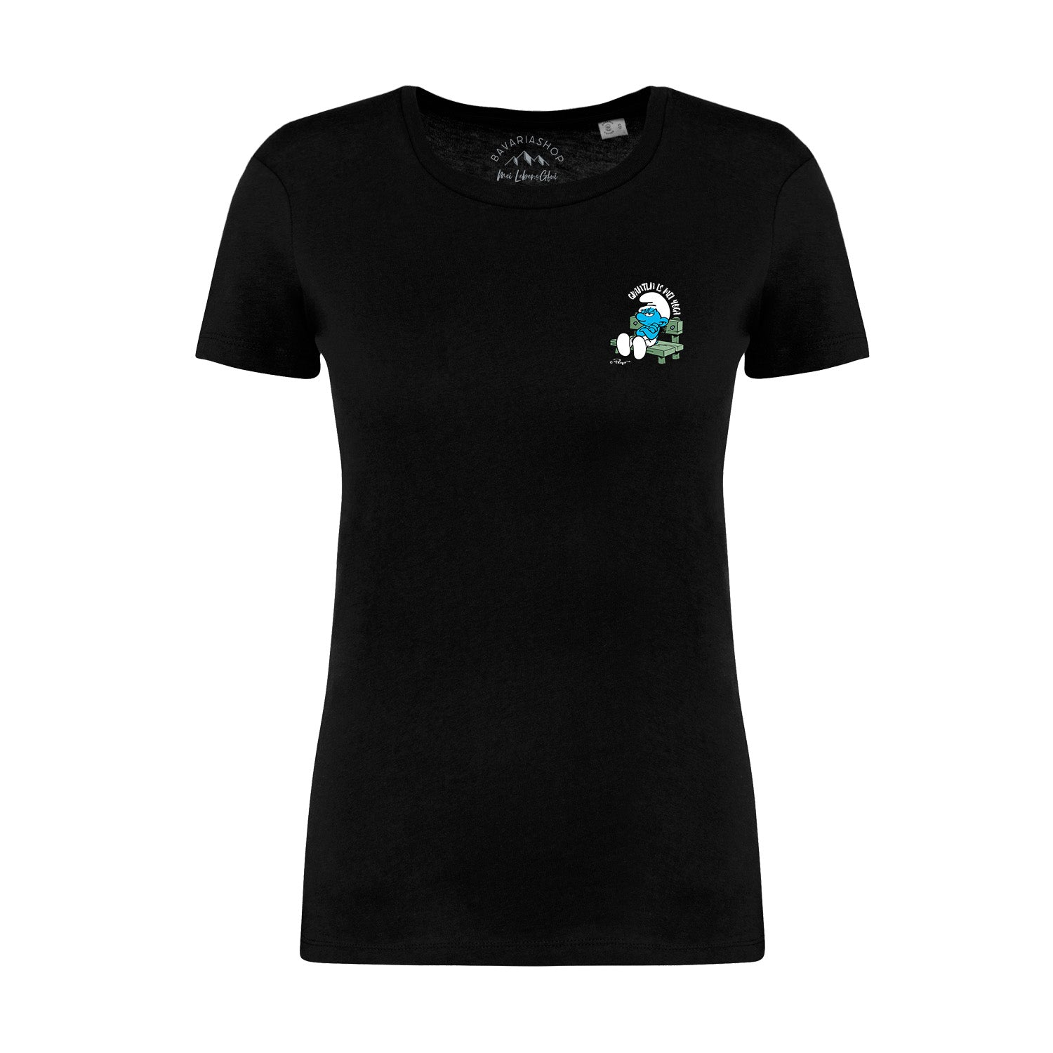 ®Die Schlümpfe Damen T-Shirt "Grantln is mei Yoga" • Original Schlümpfe Shirt • 100% Bio-Baumwolle • Frontprint