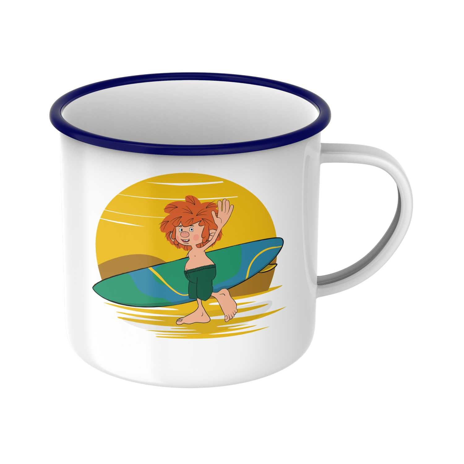 Pumuckl Emaille-Tasse „Surfer“ – Mit Wunschname personalisierbar